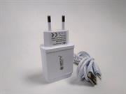 Nesty GRTA009 Dual USB Port Wall Charger-2 Pin EU Power Adaptor , 2 x USB Ports, 2.4A Fast Quick Charging , 100V-240V Input, 5 Volt Output, Includes 1 Metre IOS Lightning USB Cable, Colour White , Retail Box, No warranty